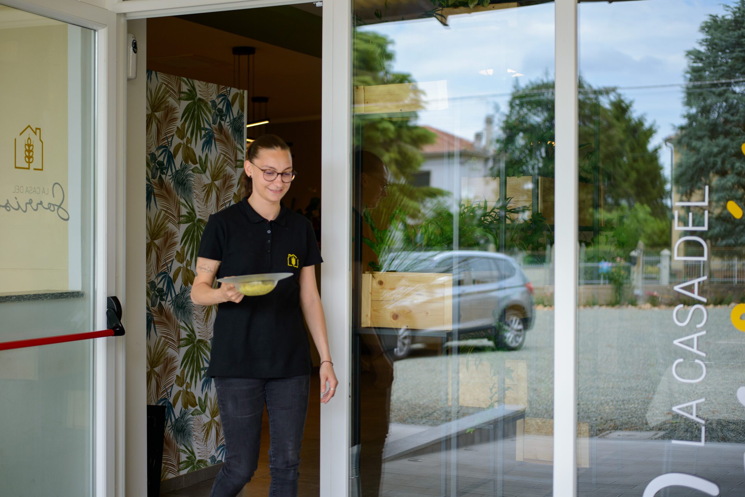 Carlotta, la figlia del nostro chef, responsabile della sala, pronta come ogni servizio a farvi accomodare ai tavoli e cercare di rendere indimenticabile l’esperienza alla Casa del Sorriso, spiegandone ogni portata o consigliandovi i vini da abbinare alle vostre scelte.